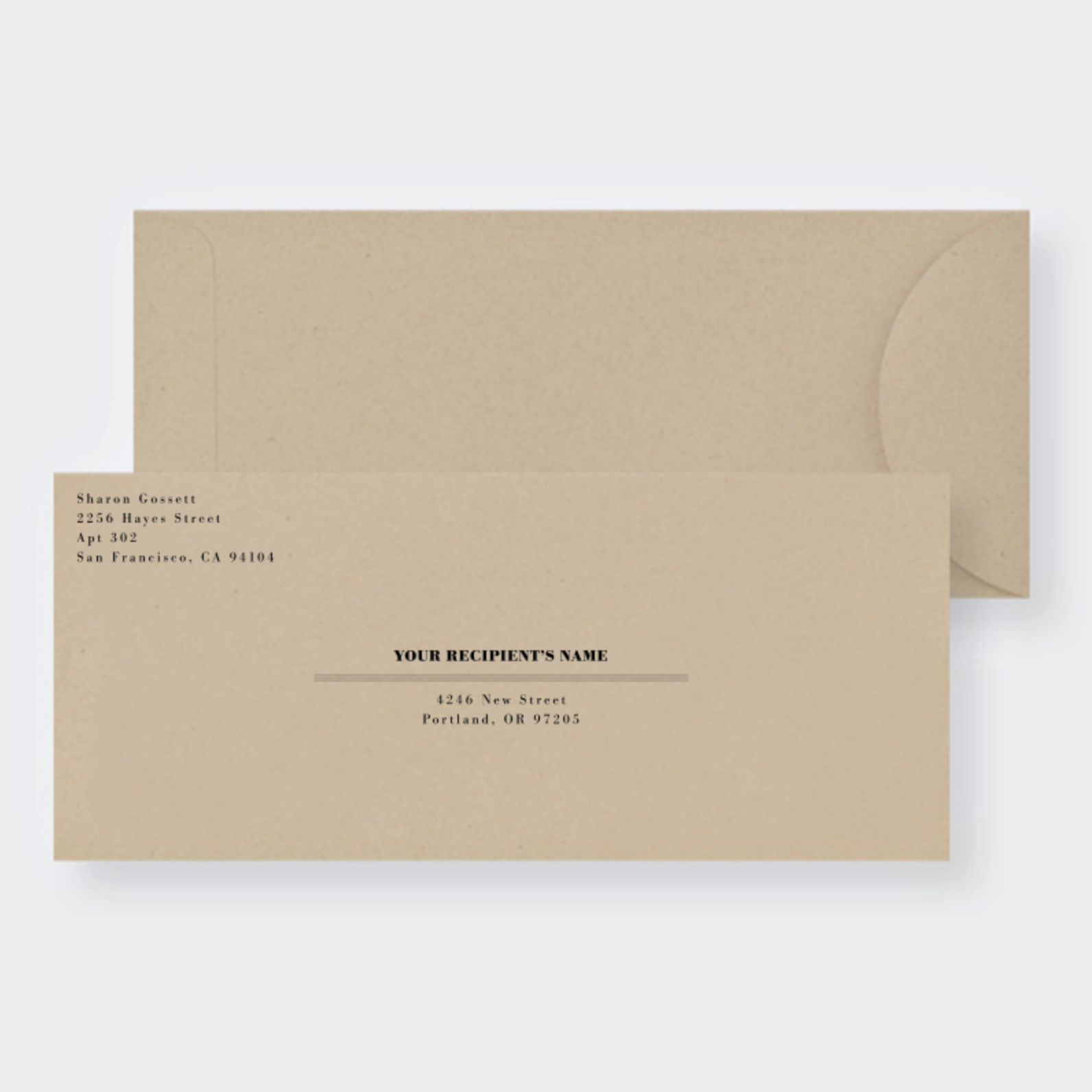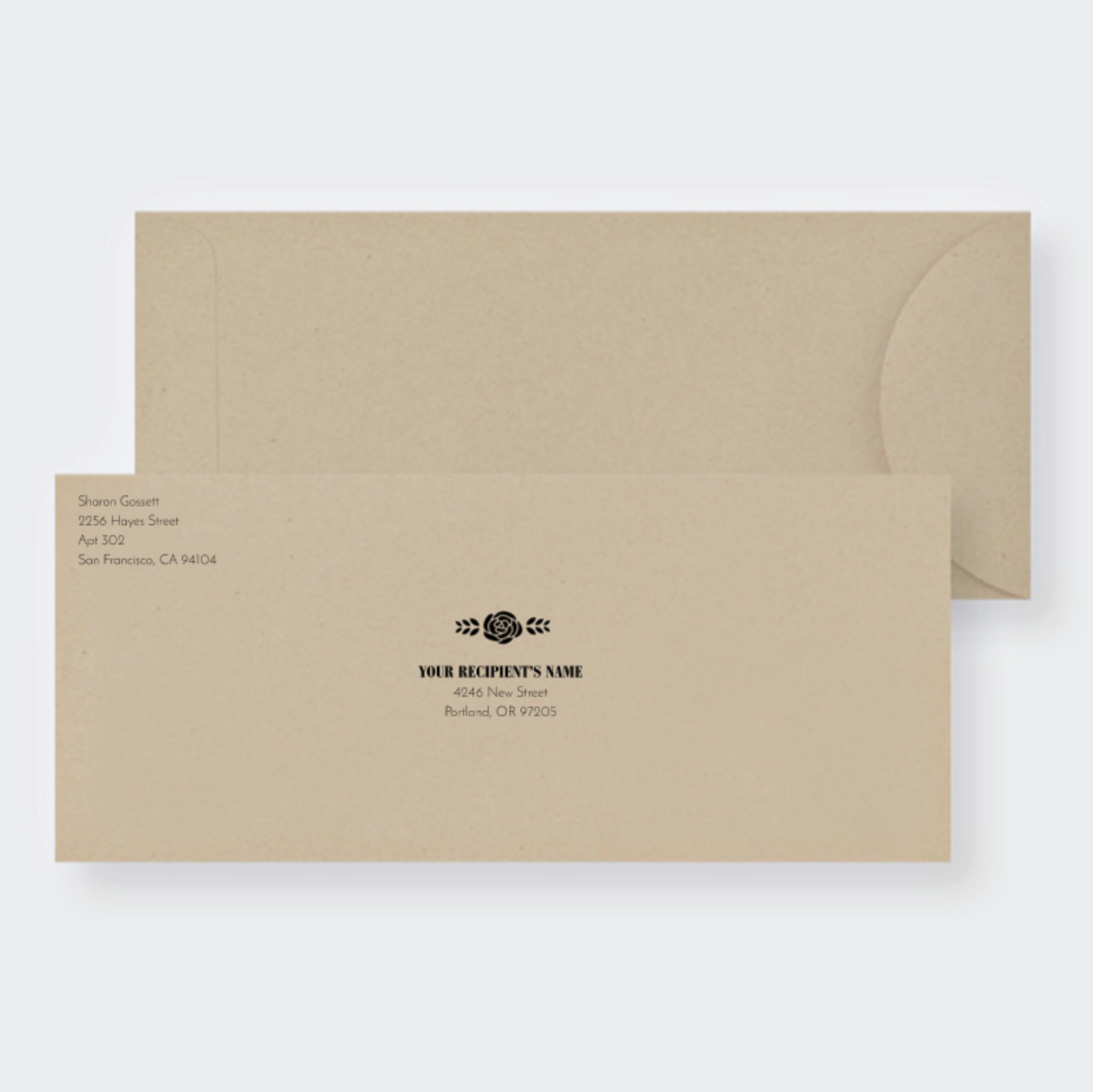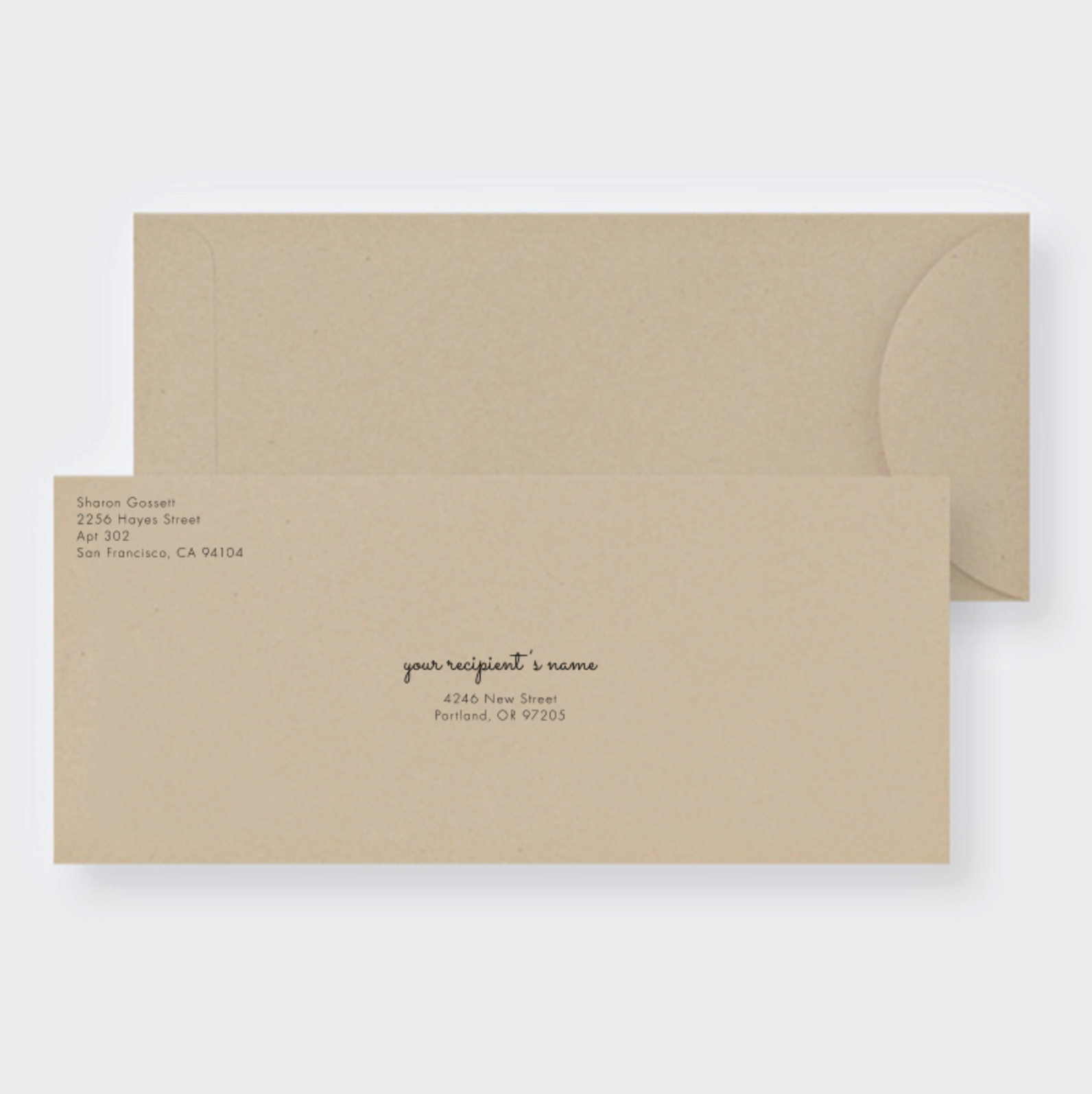 Below are our current choices for recipient and return addressed envelopes including both White Recycled and Kraft Envelopes. Click on the links below to snap to the section mentioned.