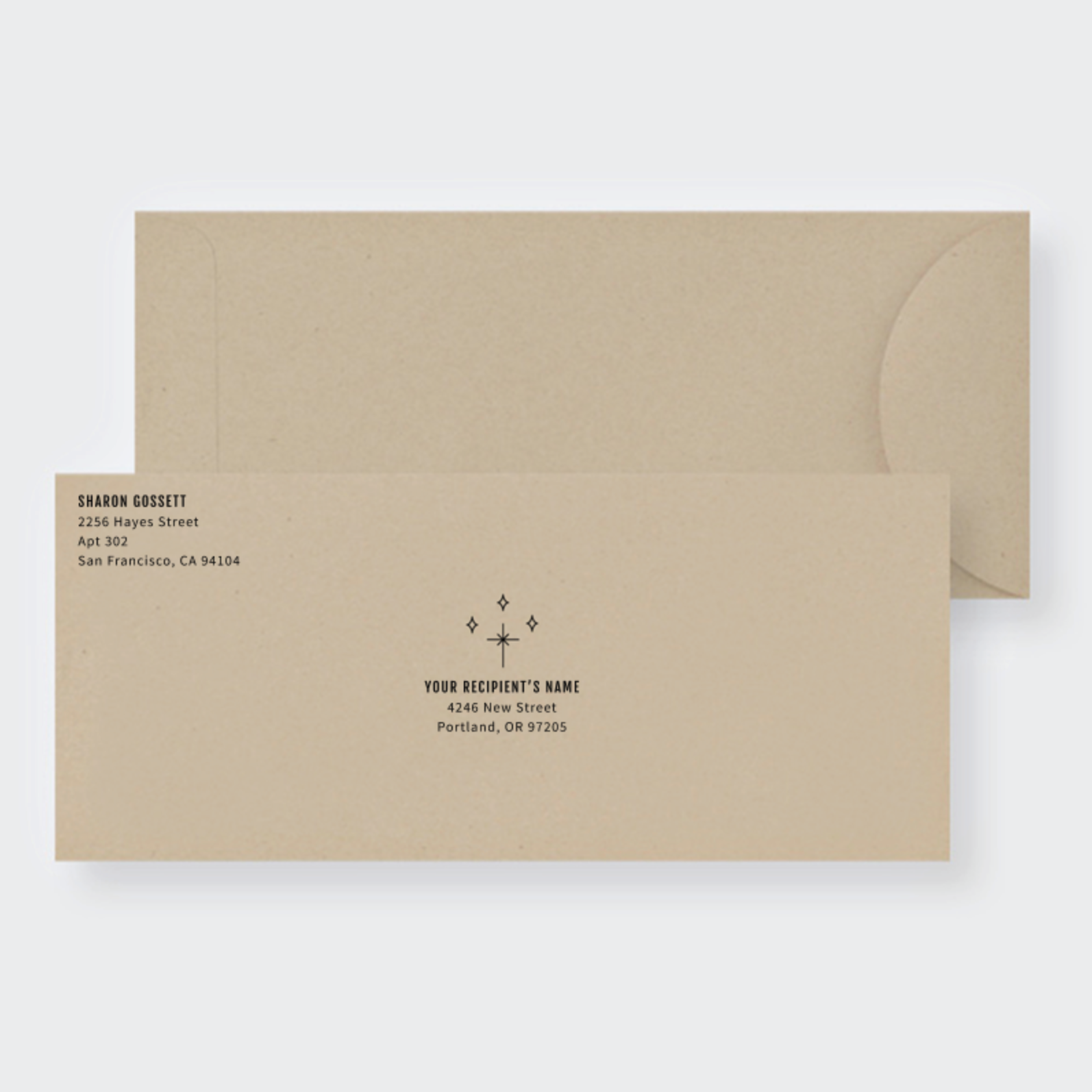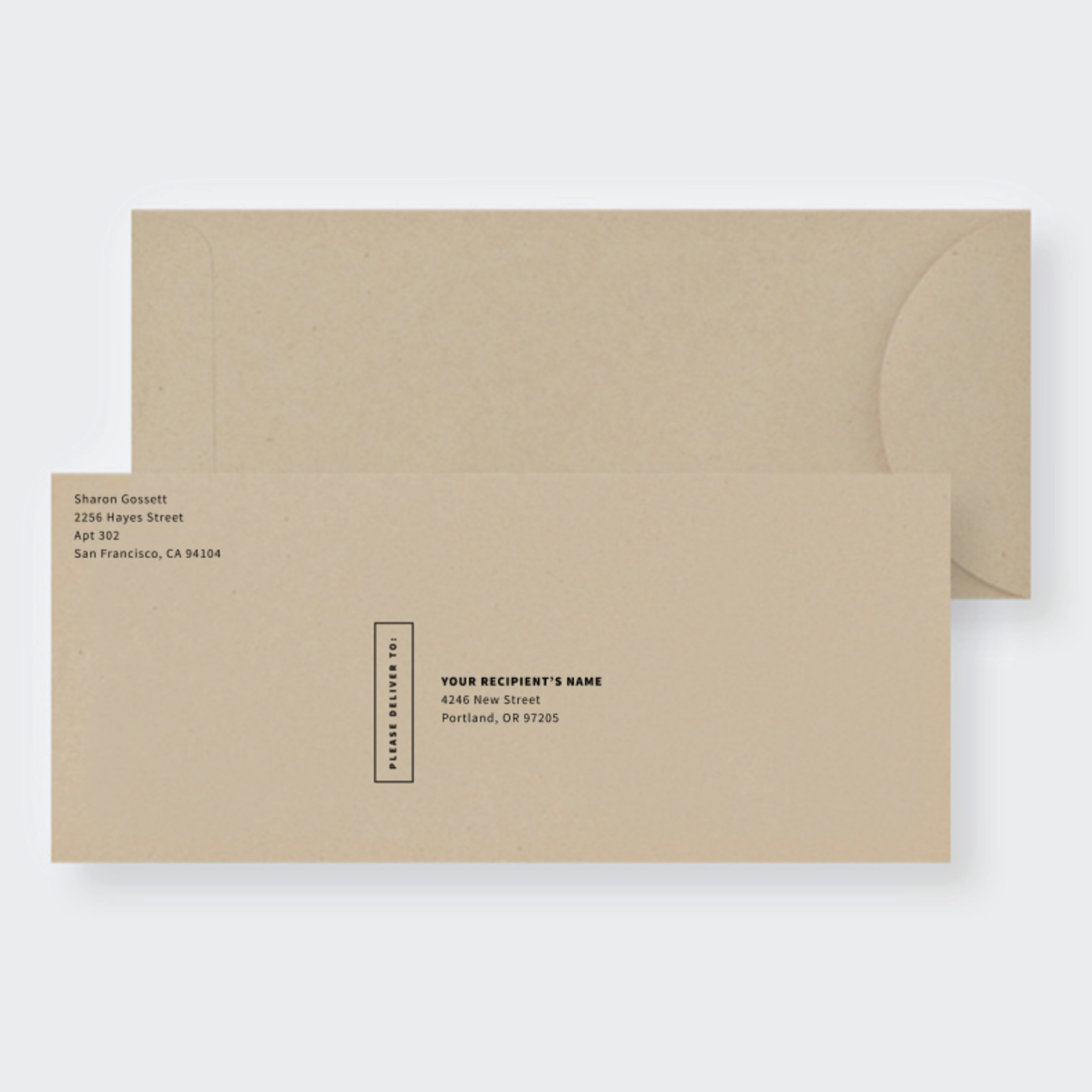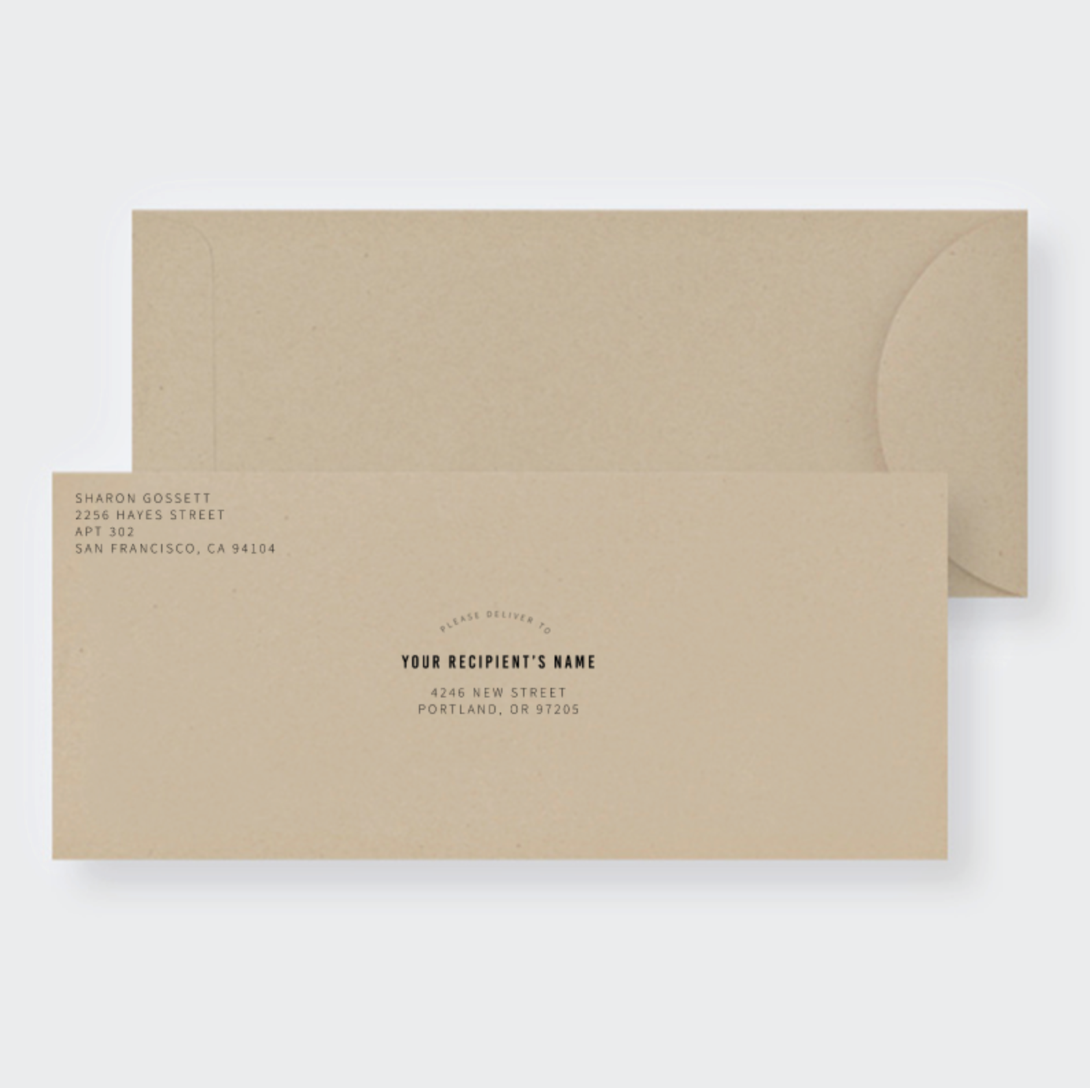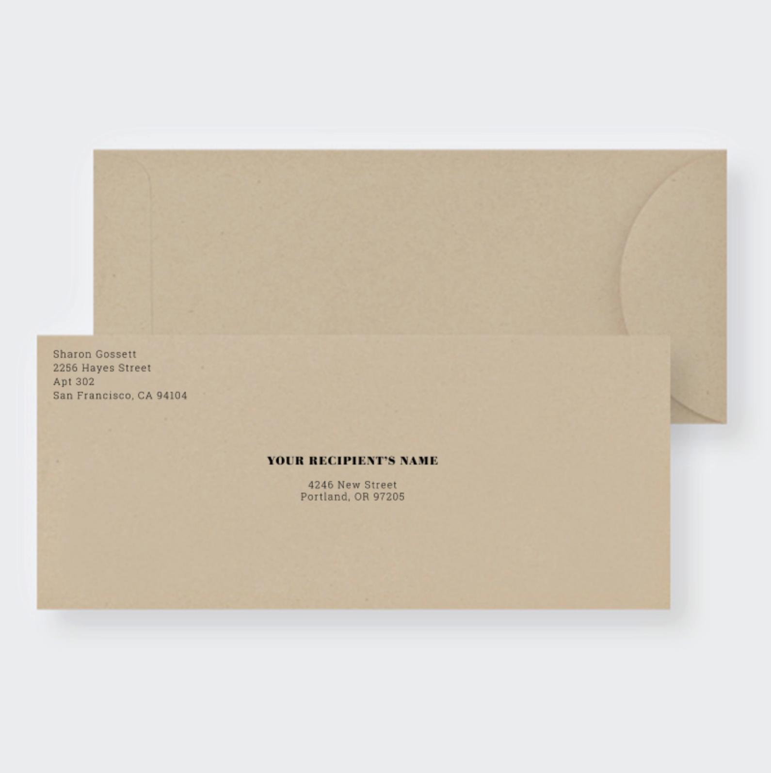 Below are our current choices for recipient and return addressed envelopes including both White Recycled and Kraft Envelopes. Click on the links below to snap to the section mentioned.